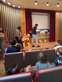 Durant la jornada, els estudiants van posar en pràctica les seves habilitats comunicatives i lingüístiques a través de la representació de contes adreçada als nens i nenes del Parvulari Nostra Senyora de Barcelona. L’activitat va permetre apropar la literatura infantil als més petits d’una manera viva, creativa i participativa.